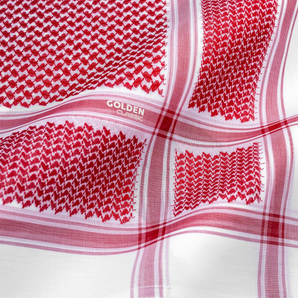 - خامة عالية الجودة: شماغ قولدن كلاسيك مصنوع من القطن الطبيعي 100%، مما يمنحه نعومة وراحة أثناء ارتدائه.