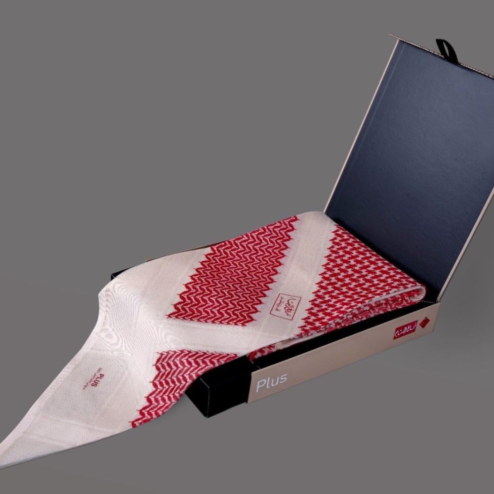 شماغ البسام بلس أحمر بيج إصدار جديد و راقي مناسب للثياب الملونة و الثياب الشتوية.