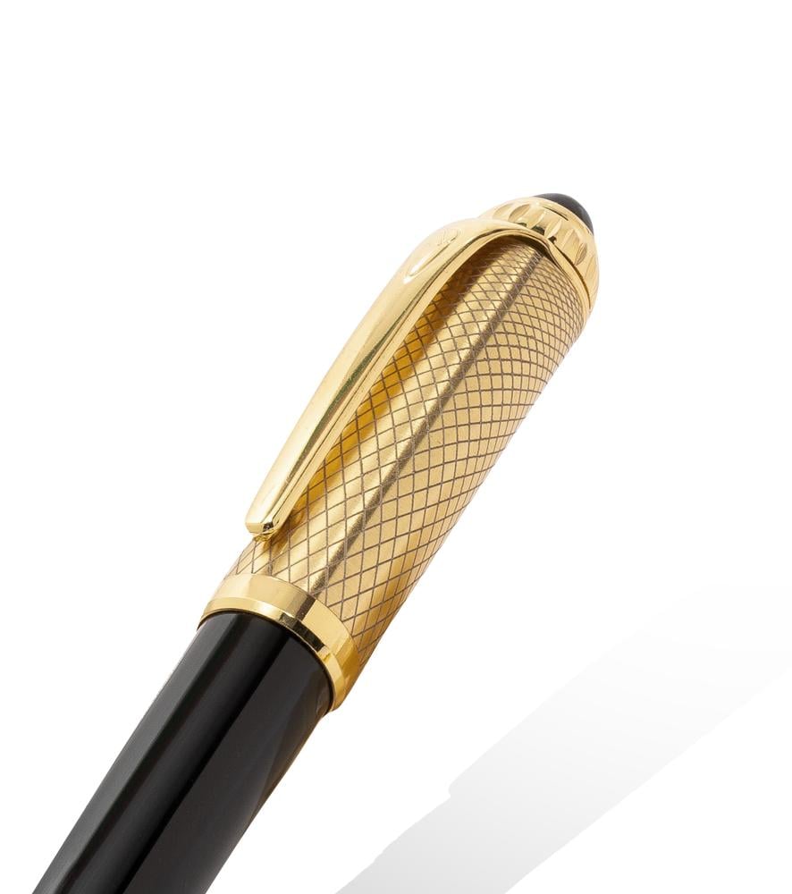 - القلم يأتي باللون الذهبي الراقي وبنقش مميز في الجزء العلوي